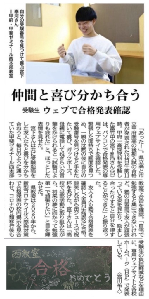 山梨県中学合格速報【第1弾】今年のSMILE(下段写真)は長坂教室からお届けします。