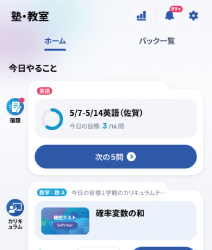 登録した教科書(中・高)ページを指定したり、取り組み時間などの項目を選択するだけで、宿題を配信することが可能。宿題の進捗率や正解率、ニガテな単元も一目で確認でき、効率的な宿題管理ができます。